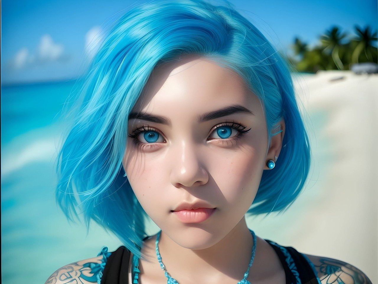 Autumn mien: Summer is an athletic, good looking and charismatic woman in her late teens. She has ocean blue hair and large similar colored eyes. She's always wearing surfer clothing, be it a wetsuit or a sun-frock or a colorful top and skirt. If possible, she doesn't wear shoes